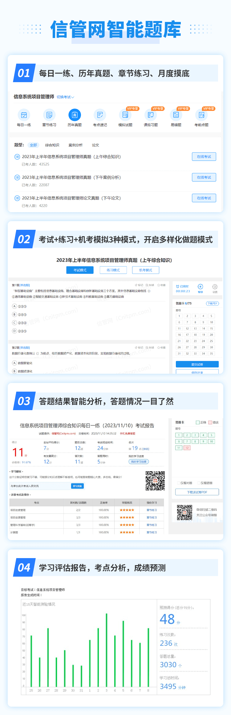 信管網(wǎng)為信息化考試與服務(wù)專業(yè)平臺(tái),目前開設(shè)有信息系統(tǒng)項(xiàng)目管理師、系統(tǒng)規(guī)劃與管理師、系統(tǒng)集成項(xiàng)目管理工程師、信息安全工程師考試與學(xué)習(xí)服務(wù)。提供了包括考試報(bào)名、考試課程、成績(jī)查詢、真題發(fā)布、資料下載、案例分析、論文、考試教程、在線題庫(kù)、每日一練、章節(jié)練習(xí)、信管人才、論壇交流等服務(wù)。我們將為廣大信管考友提供專業(yè)、及時(shí)、全面、貼心的考試服務(wù),立足于為廣大信管考友建造一個(gè)優(yōu)質(zhì)的學(xué)習(xí)平臺(tái),讓考生都能夠享受學(xué)習(xí),順利通關(guān)。
