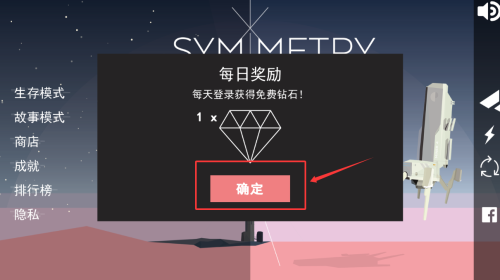 1、點(diǎn)擊確定按鈕,領(lǐng)取每日登錄的免費(fèi)鉆石獎(jiǎng)勵(lì)。