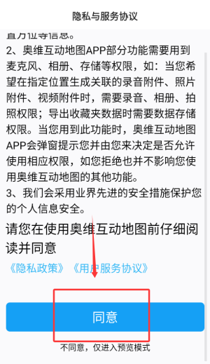1、開啟軟件后,輕觸同意按鈕完成授權(quán),隨即跳轉(zhuǎn)至應(yīng)用首頁,為后續(xù)操作提供完整的地圖服務(wù)支持。