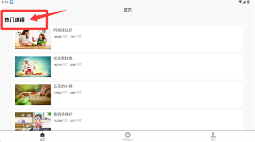 3、返回首頁(yè)后,可在熱門(mén)課程區(qū)選擇感興趣的菜式內(nèi)容瀏覽。