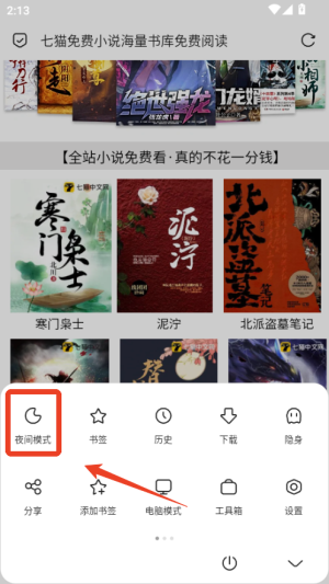 2、使用閱讀模式瀏覽小說,打開小說網(wǎng)站后點(diǎn)擊底部書本圖標(biāo),頁面會(huì)轉(zhuǎn)為純凈排版。