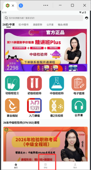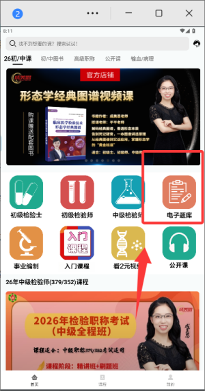 1、首先打開醫(yī)考過app完成注冊(cè)登錄,進(jìn)入首頁(yè)后可根據(jù)需求選擇內(nèi)外科、藥學(xué)等核心課程模塊進(jìn)行系統(tǒng)學(xué)習(xí)。
