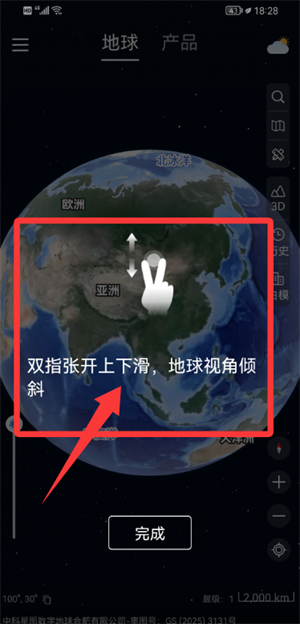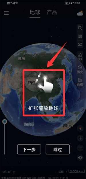 2、通過雙指擴張或收縮手勢,可自由調節(jié)地球模型的顯示比例。