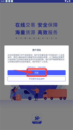 1、首先在用戶須知頁點(diǎn)擊同意,開啟應(yīng)用使用權(quán)限。