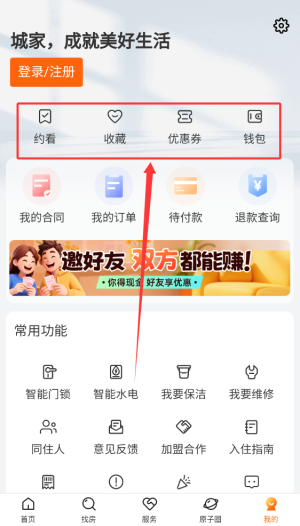 3、個人中心集中管理看房預(yù)約記錄、收藏房源、優(yōu)惠憑證及賬戶余額信息。