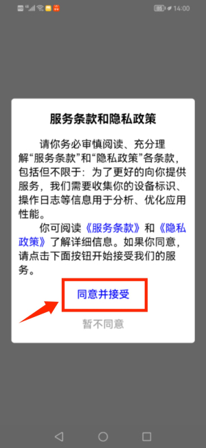 1、啟動(dòng)軟件,確認(rèn)服務(wù)條款與隱私政策后進(jìn)入登錄界面。