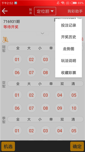 2、智能選號工具嵌入多重算法模型。提供冷熱號統(tǒng)計、形態(tài)分布圖、隨機組合生成等六種輔助模式。自定義收藏夾可保存常用號碼組合,支持一鍵批量投注操作。